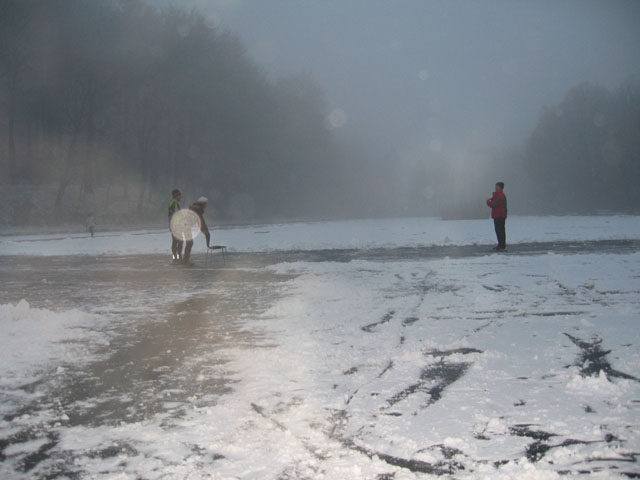 Welter vijver in Heerlen is ook beschikbaar (4 januari 2009). De ijsvogels hebben meegeholpen de baan schoon te maken.