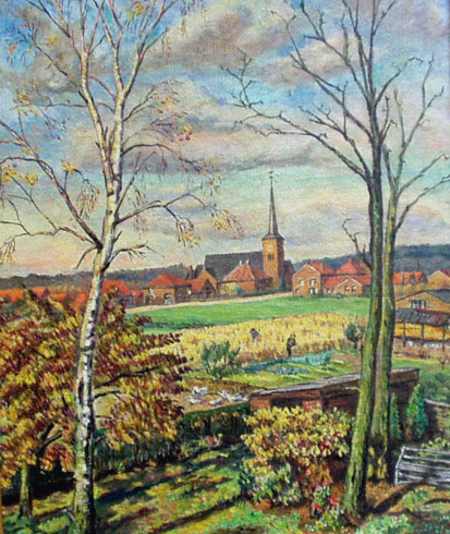 Tini van Hulten - Gezicht op de kerk van Milsbeek en het Reichswald